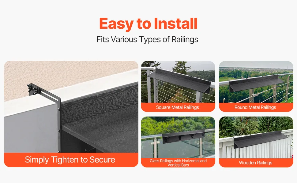 The adjustable bracket design allows for a quick and easy setup. No need for measurements – simply tighten the brackets to securely attach the table to any type of railing. You can install it without any prior DIY experience.