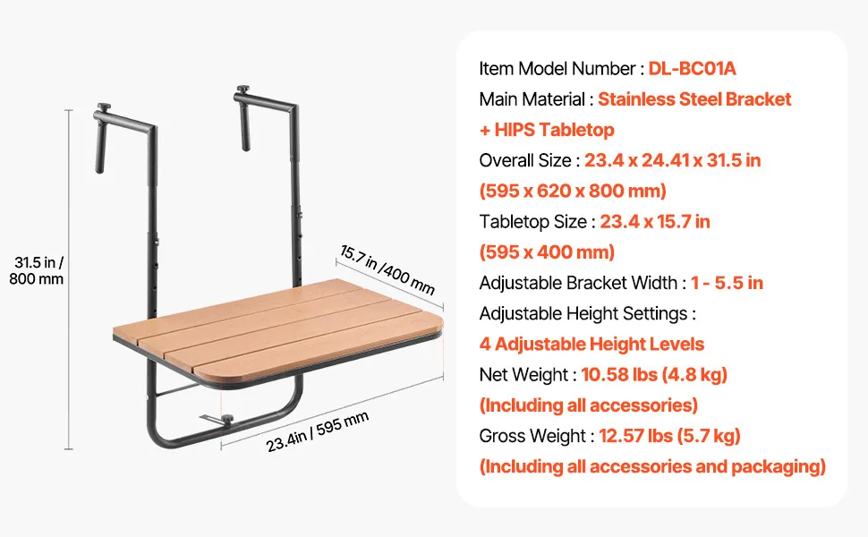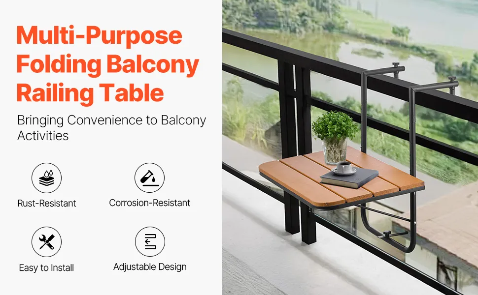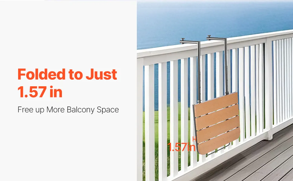 Space-Saving and Foldable: When not in use, simply press to fold the hanging balcony table and free up valuable balcony space. Its compact design ensures that it doesn't take up much room, helping to keep your outdoor area tidy and organized.