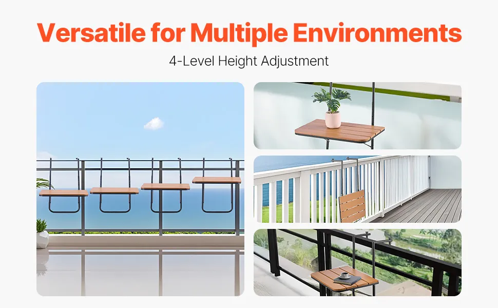 Designed with flexibility in mind, this hanging balcony table features adjustable height settings to accommodate different user preferences and various outdoor scenarios. Whether for work, dining, or leisure, it’s the perfect addition to any balcony or patio.