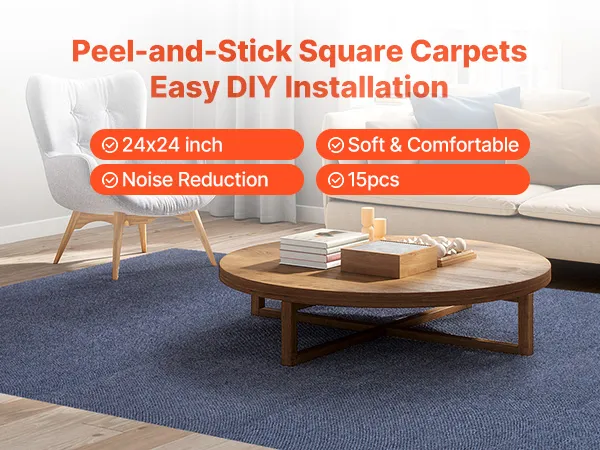 Quick Stick-On Backing: No additional adhesive needed, just peel off the backing and press to install. These peel and stick carpet tiles make setup fast and fatigue-free