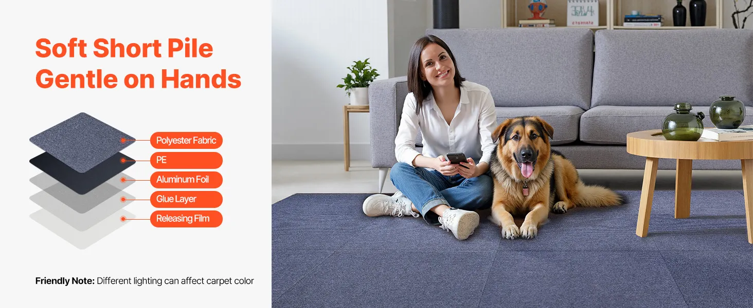 Easy to Maintain: Unlike large carpets that are hard to clean, this modular carpet square system allows you to replace only the dirty tile. Easy to clean, easy to swap—ideal for busy households or offices. Color Note: Actual rug colors may appear slightly different due to variations in screen resolutions and ambient lighting