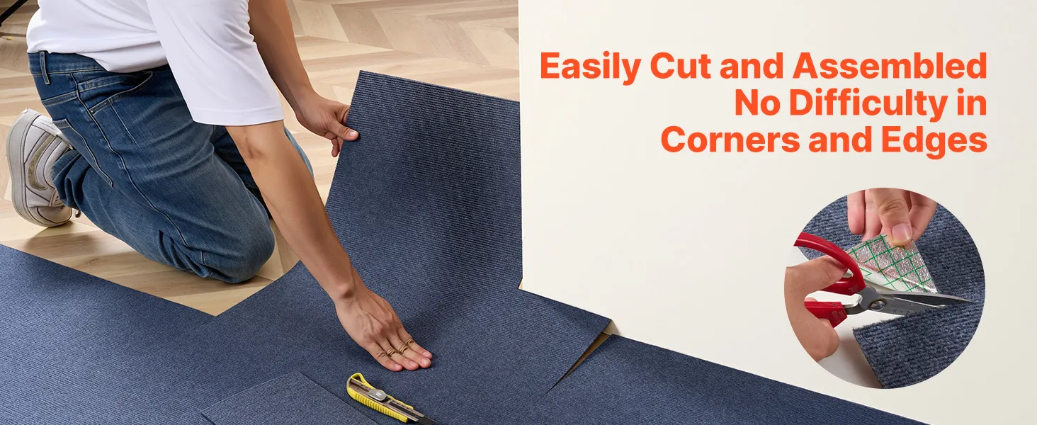 Each carpet tile can be freely cut to any shape or size, making it easy to cover irregular spaces and achieve full-room coverage without hassle.