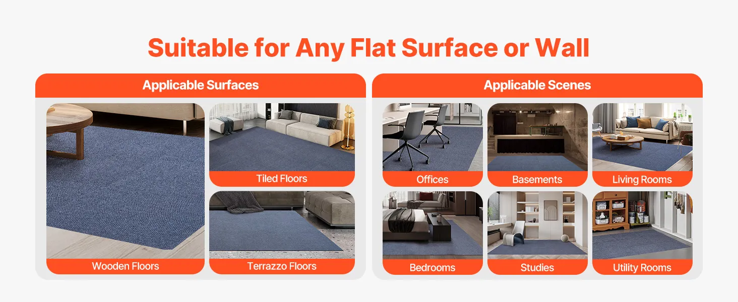 These carpet square rug tiles are suitable for various indoor spaces. They not only enhance the cozy feel of your room, but also reduce noise, provide cushioning, and protect hard flooring surfaces.