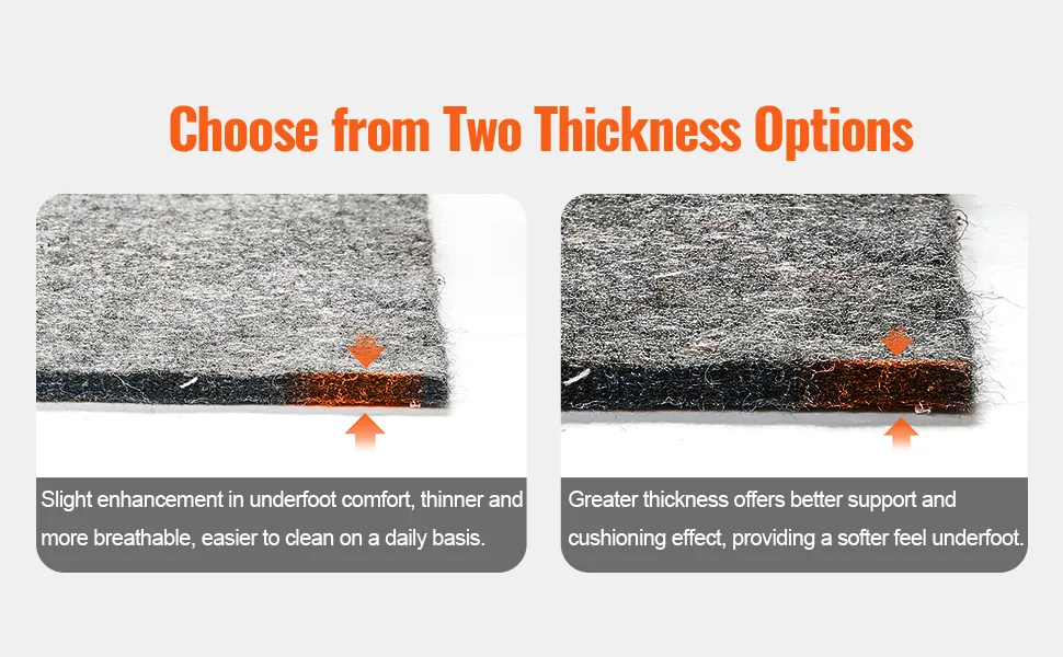 Choose between two thicknesses: 0.47'' for ultimate comfort, ideal for sensitive individuals, or 0.24'' for a lightweight, breathable, and anti-slip option.