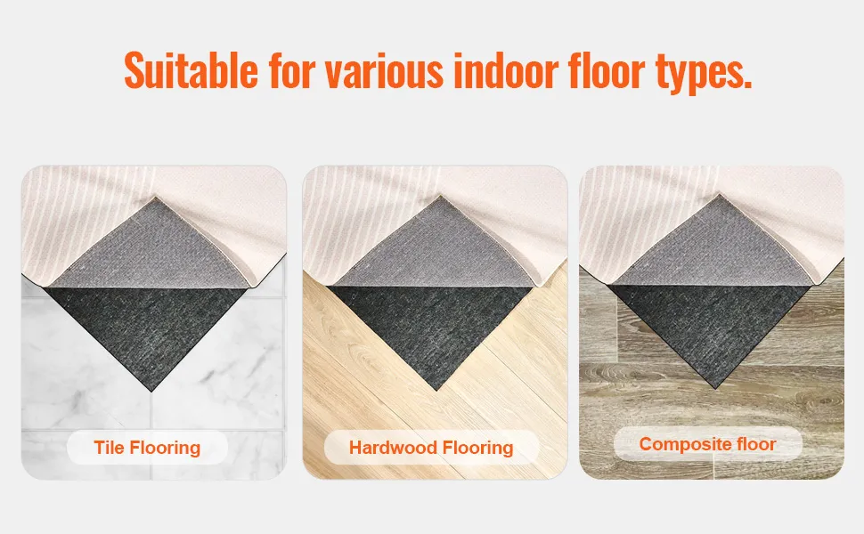 Suitable for various floor types—tile, hardwood, or laminate—the strong anti-slip design ensures your rug remains stable in any indoor setting.