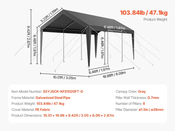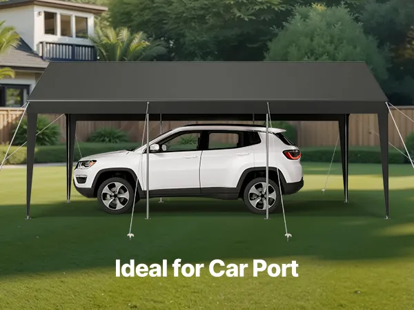 Portable garage offers 10x20 ft area with a galvanized steel frame and double-layer PE-coated tarp, providing sun protection, waterproofing, and wind resistance to guard your vehicle and outdoor items. Quick to assemble and built for durability, as a garage, storage space, outdoor activity area.