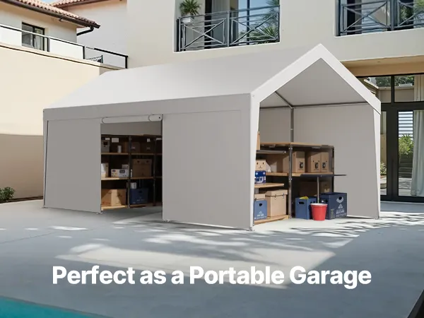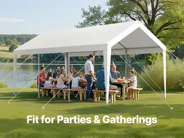 Car canopy offers 10×20 ft area featuring a galvanized steel frame and double-layer PE-coated tarp, providing sun, rain, and wind protection for your vehicle and outdoor items year-round. Quick to assemble and built for durability, Ideal for a garage, storage, or outdoor activity space.