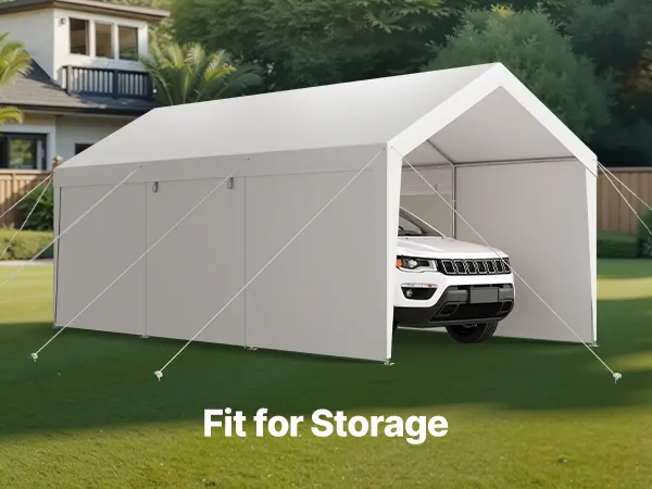 Protection from Harsh Weather: The carport features a double-coated PE tarp that is UV-resistant and waterproof, providing long-term protection for your car, RV, or outdoor equipment from rain, strong sunlight, and natural elements like dust.