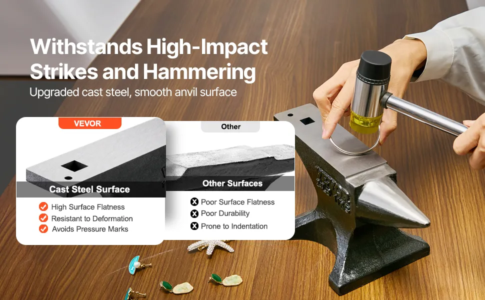 This cast steel anvil boasts higher strength and hardness. It can endure heavy impacts and striking forces without deforming or getting damaged, ensuring longevity and reliability. This makes it ideal for improving both work efficiency and the lifespan of your tools.