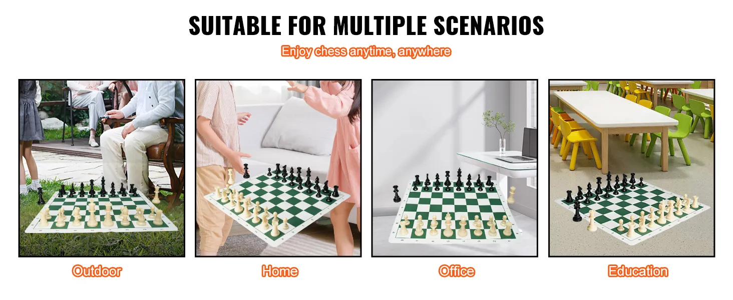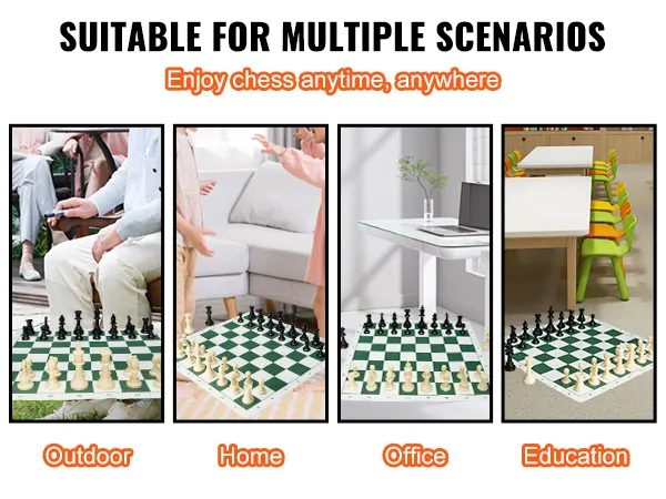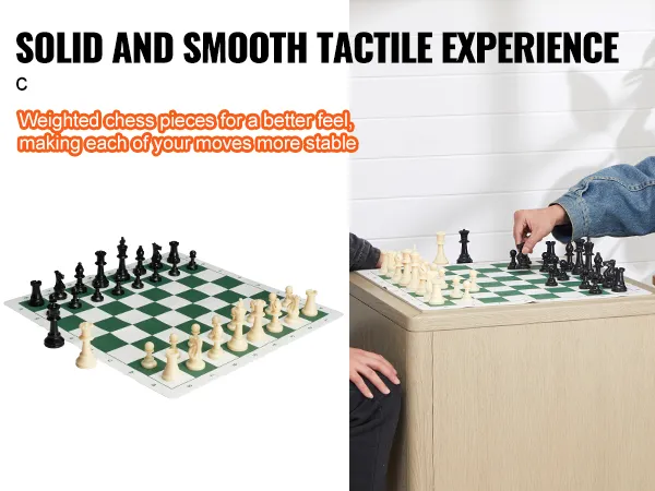 The VEVOR tournament chess set is perfect for those who love to play chess on the go. The board stays flat, making it easy to set up and play anytime. This set is designed for chess clubs and tournament players, ensuring it meets competition standards. The silicone board is portable and durable enough to withstand frequent travel. The added bag makes it convenient to carry. This chess set is ideal for anyone who wants to be able to play chess anywhere. Whether you're at home or on the go, this set will be ready for use.