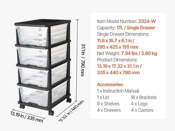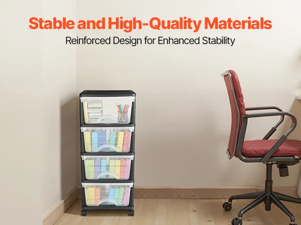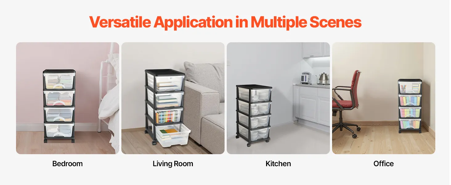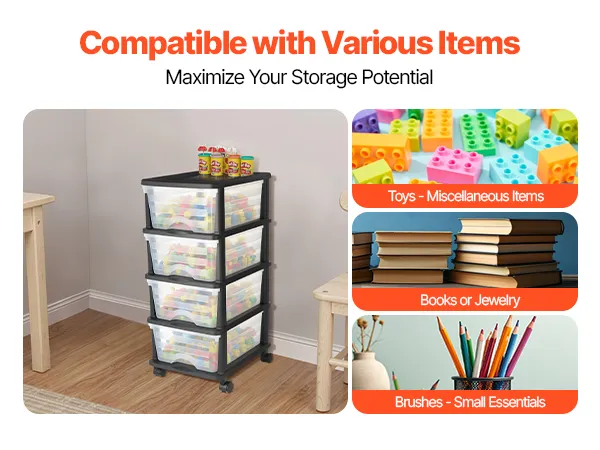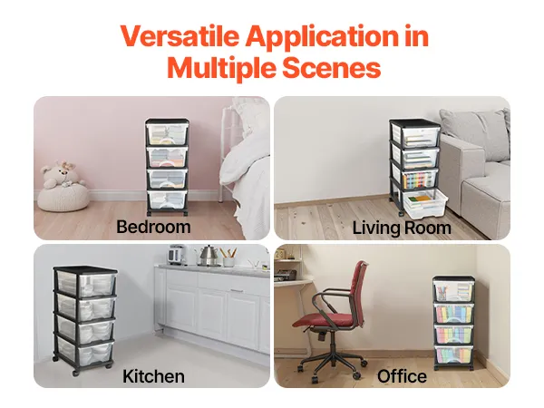 • Visible for Easy Access: The transparent front panel allows users to see the contents clearly, saving time when searching for items. The sliding plastic drawers storage design makes it easy to retrieve items, enhancing storage efficiency