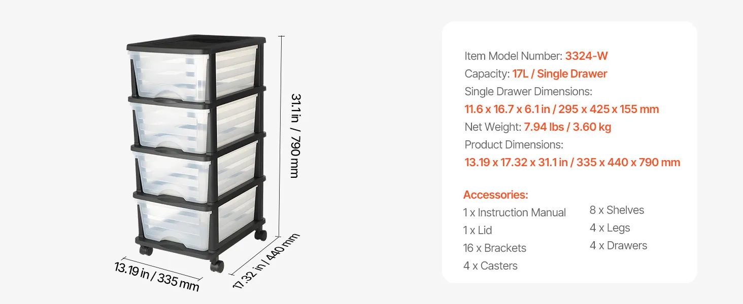 • Space-Saving & Easy to Move: Equipped with detachable wheels, this storage drawers can be easily moved or fixed in place—offering flexible use across different settings. It's the ideal solution for small apartments and compact office spaces