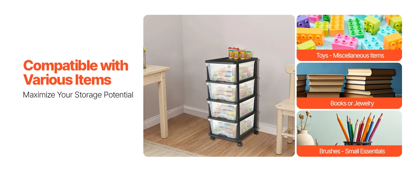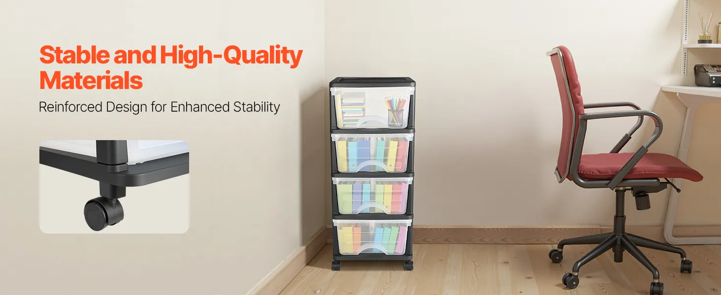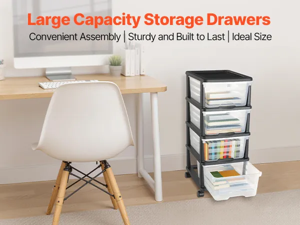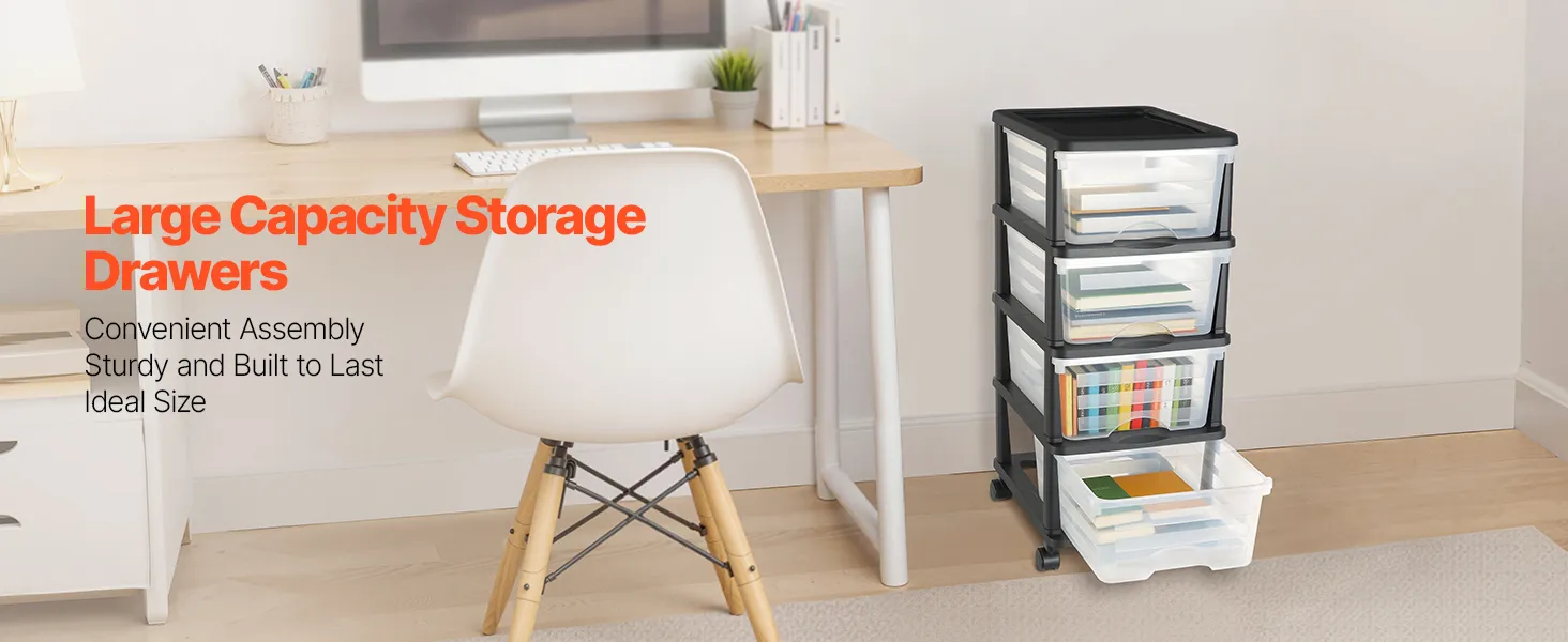 VEVOR Plastic Storage Drawers Cart, 4 Drawers Storage Organizer with Wheels, Rolling Closet Organization and Storage Dividers, Dresser Organizer Clear Bins for Office Supplies, Craft Rooms, Classrooms VEVOR Plastic Storage Drawers Cart, 4 Drawers Storage Organizer with Wheels, Rolling Closet Organization and Storage Dividers, Dresser Organizer Clear Bins for Office Supplies, Craft Rooms, Classrooms