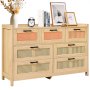 Robust & Elegant: Handwoven from natural rattan, this natural wood dresser is not just elegant, but also built to last. The sturdy PB frame ensures stability, while the easy-to-clean surfaces maintain their pristine look for years. The metal sliders guarantee smooth and silent drawer operation, adding to its durability.