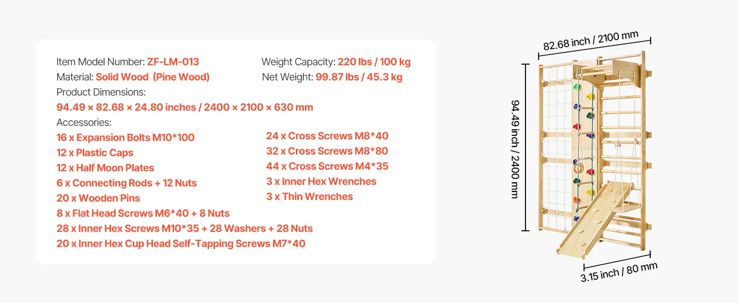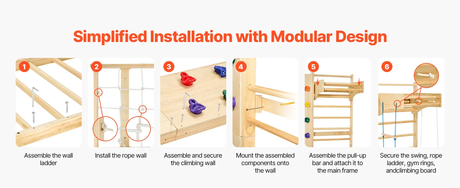 With the modular design and detailed user manual, setting up this wooden swedish ladder wall set is a simple task. No need for expert help—just follow the instructions, and you’re creating a fun-filled playground quickly.