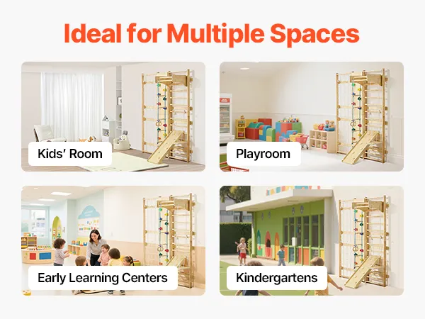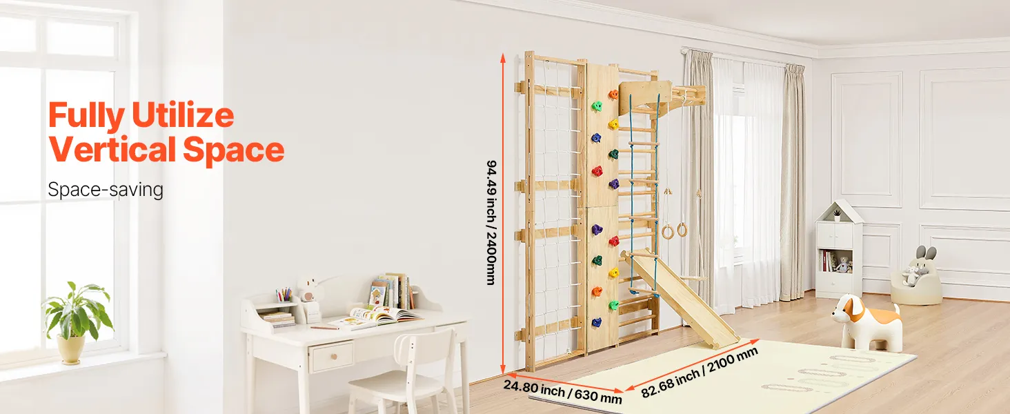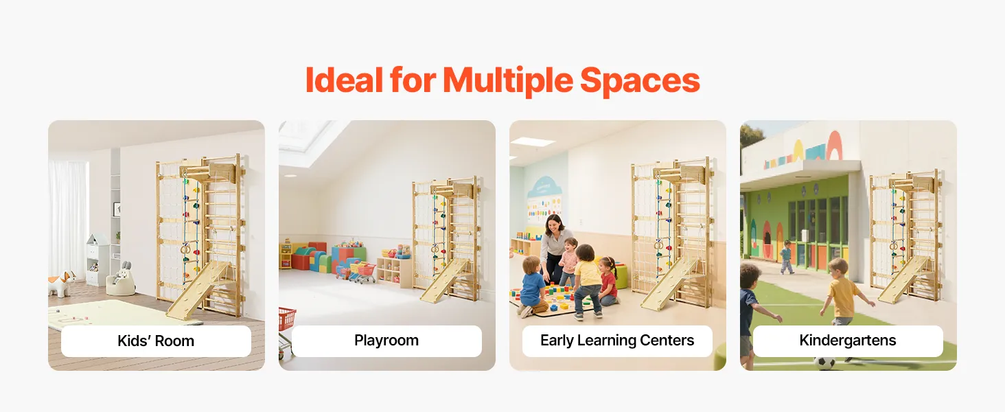 Space Saving: With a compact size and wall-mounted setup, this indoor jungle gym makes full use of vertical space. It fits easily into kids' rooms, gym corners, or hallway walls — durable, stylish, and built to help kids climb, exercise, and grow stronger