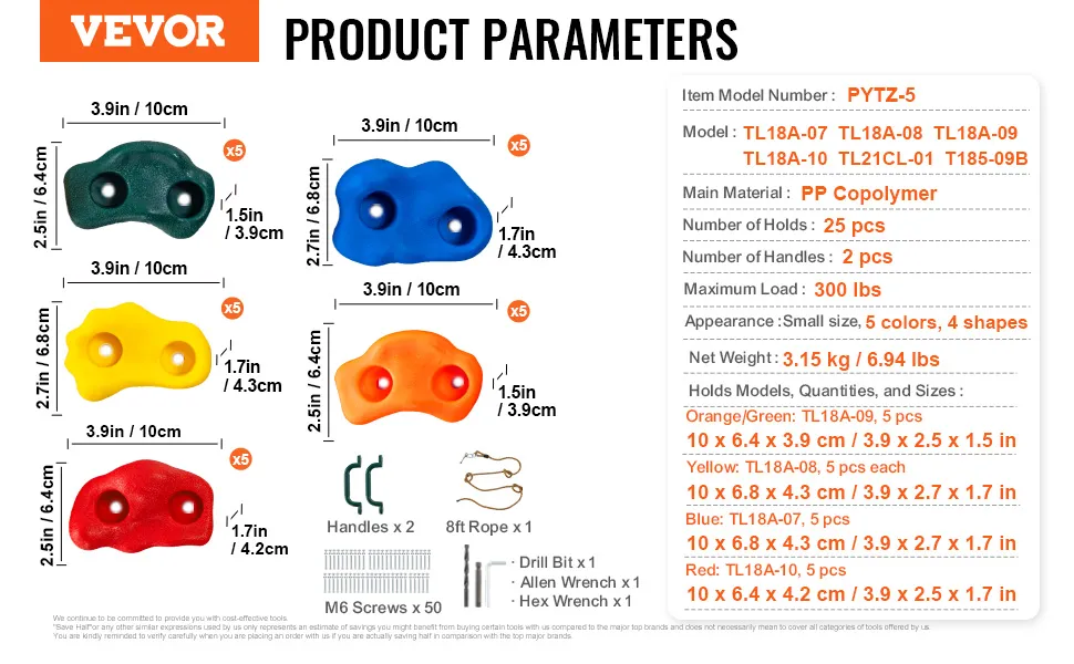 Easy to Install: The rock climbing holds are incredibly simple to install. The kit comes with installation screws and other accessories, ready to use, saving you valuable time.