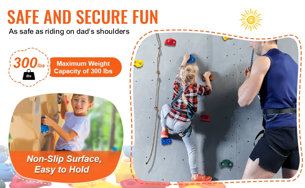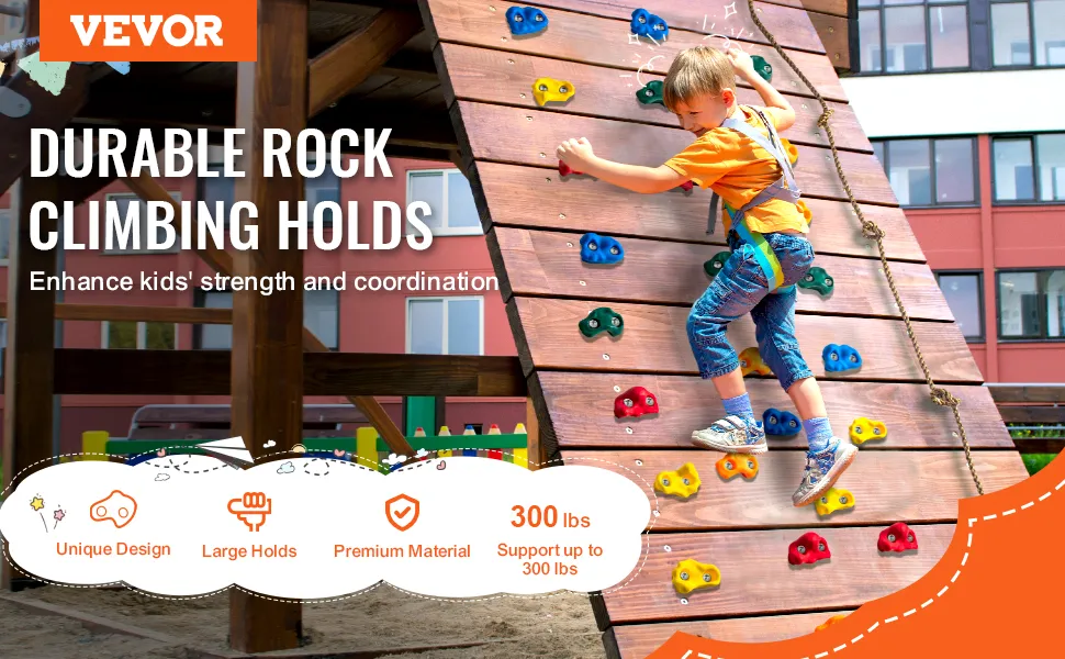 The climbing rocks provide a safe and exciting climbing experience for your little adventurers. Made from anti-slip, durable, high-quality PP copolymer, they are sturdy enough to support up to 300 lbs, ensuring your child's safety while they play.