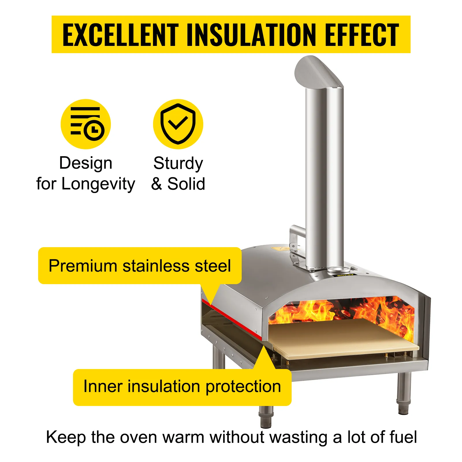 The pizza oven's 430 stainless steel shell and internal insulation cotton can provide an ultra-high insulation system. The cordierite pizza stone can withstand high temperatures to 1472°F, making the inside of the pizza crust more fluffy.