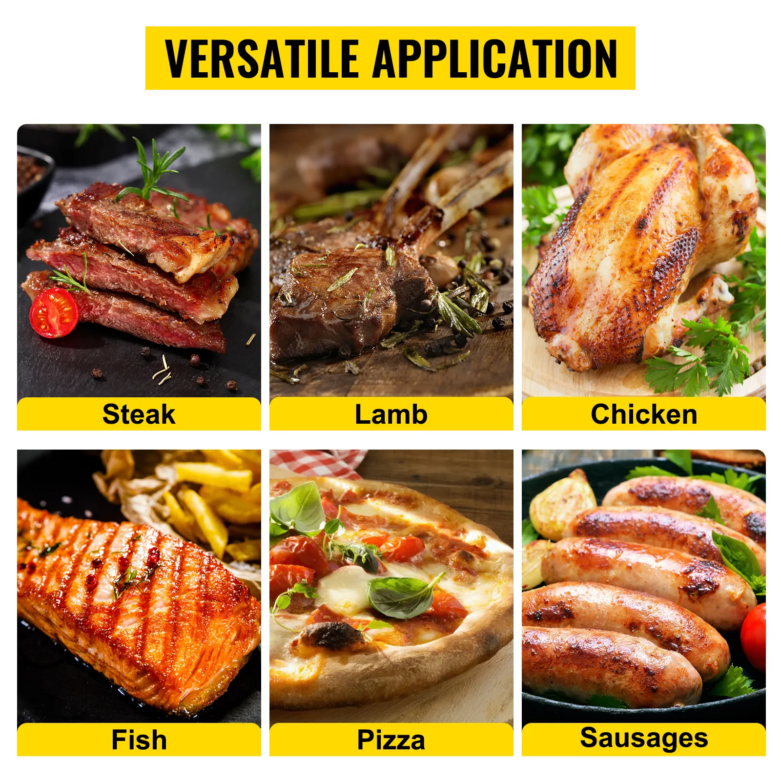 Being capable of heating up to 860°F in 15 minutes, our outdoor oven can give you more time to sit back and relax in your backyard while enjoying great pizzas. Built-in thermometer to monitor the temp. You can choose flavored pellets or wood chips to cook and create a rich, smoky flavor.