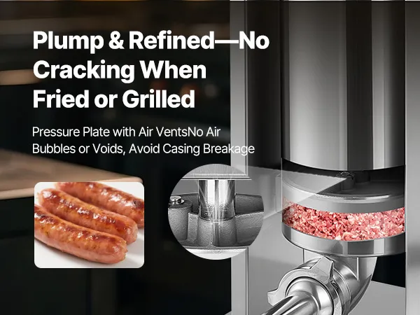 • Firm Filling: The pressure plate of this sausage maker features vent holes that release excess air as you press. No need to poke casings repeatedly or worry about breakage. The result: chewy, well-shaped sausages with great texture