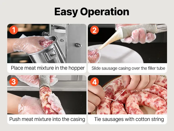 • Easy Cleaning: Our sausage-filling machine features detachable parts like the barrel, piston, and tubes, all dishwasher-safe. The stainless steel exterior wipes clean. Ideal for home, business, hunting, or pet food, and a thoughtful gift too