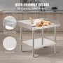 The VEVOR Stainless Steel Work Table offers a spacious two-tiered design. The main tabletop provides ample workspace. It provides you with enough space to work in your kitchen. The lower shelf also gives extra storage space. You can store kitchen tools, utensils, and ingredients on the lower shelf. This maximizes your efficiency. Everything you need is within reach. Design helps keep your workspace organized. It is ideal for busy kitchens with limited space. The two levels are practical and functional. They improve workflow and productivity.