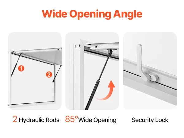 Easy to Open: With an 85° wide opening angle and a clear view, the concession truck window is equipped with two hydraulic rods for opening. The included awning guards against heavy rain, sun, and theft, enabling you to serve customers with ease