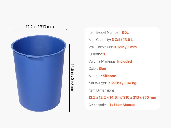 Clear Measurement Marks: Precision matters. This silicone liner features easy-to-read gallon and liter markings for accurate mixing. Reduce material waste and achieve consistent results. No more worrying about making a mess of your workplace