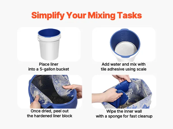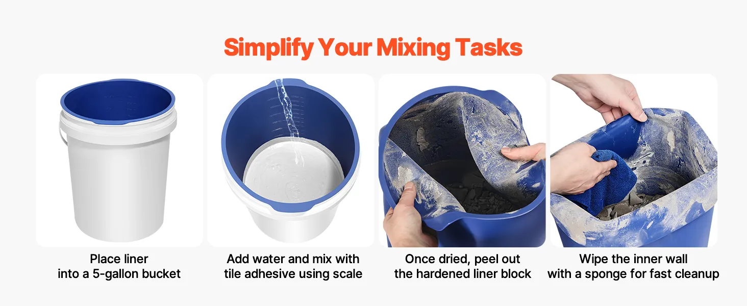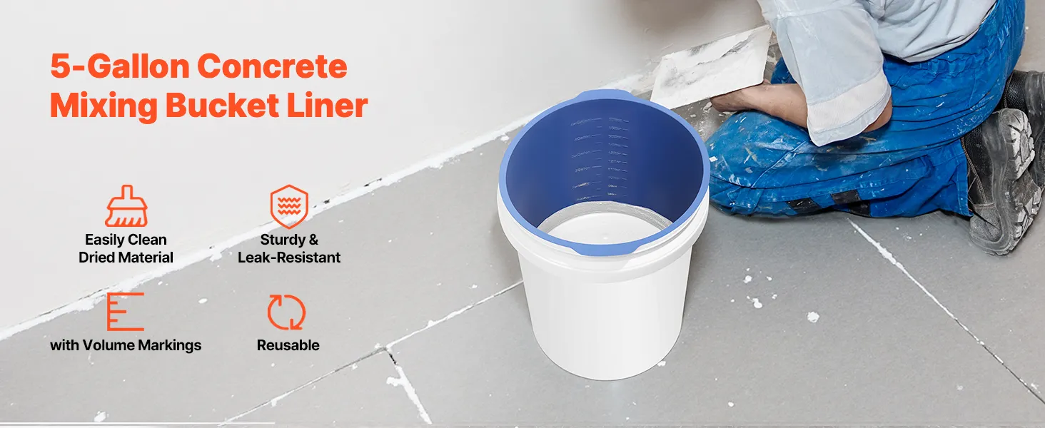 Multi-Purpose Use: One bucket liner is made of heavy-duty silicone, it's tough enough for construction materials. Versatile bucket liner for loading cement-based industrial products, ideal for mixing a variety of paints, concrete, thinset mortar