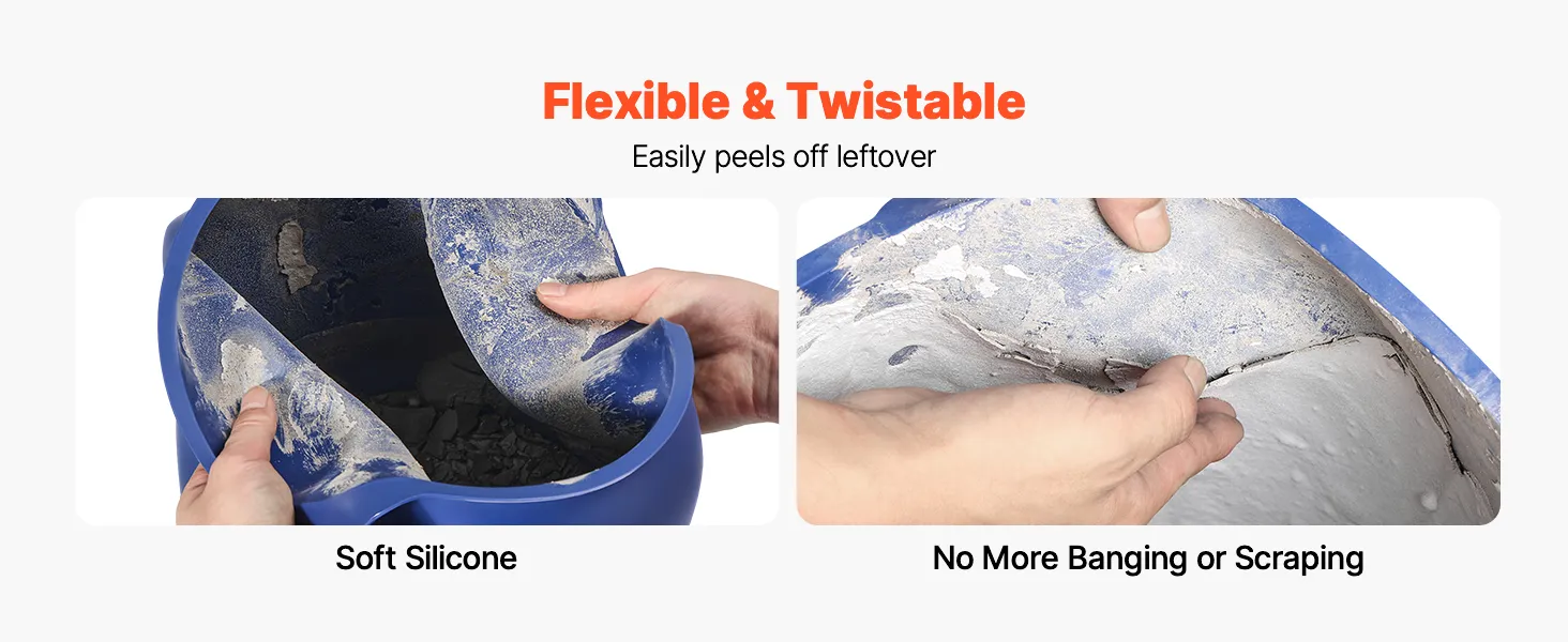 Built for Long-Lasting: Made from 3mm thick high-density silicone, this liner is abrasion-resistant, leakproof, heat-resistant. The smooth, non-stick surface makes mixing easier—no more concrete sticking or slowing you down