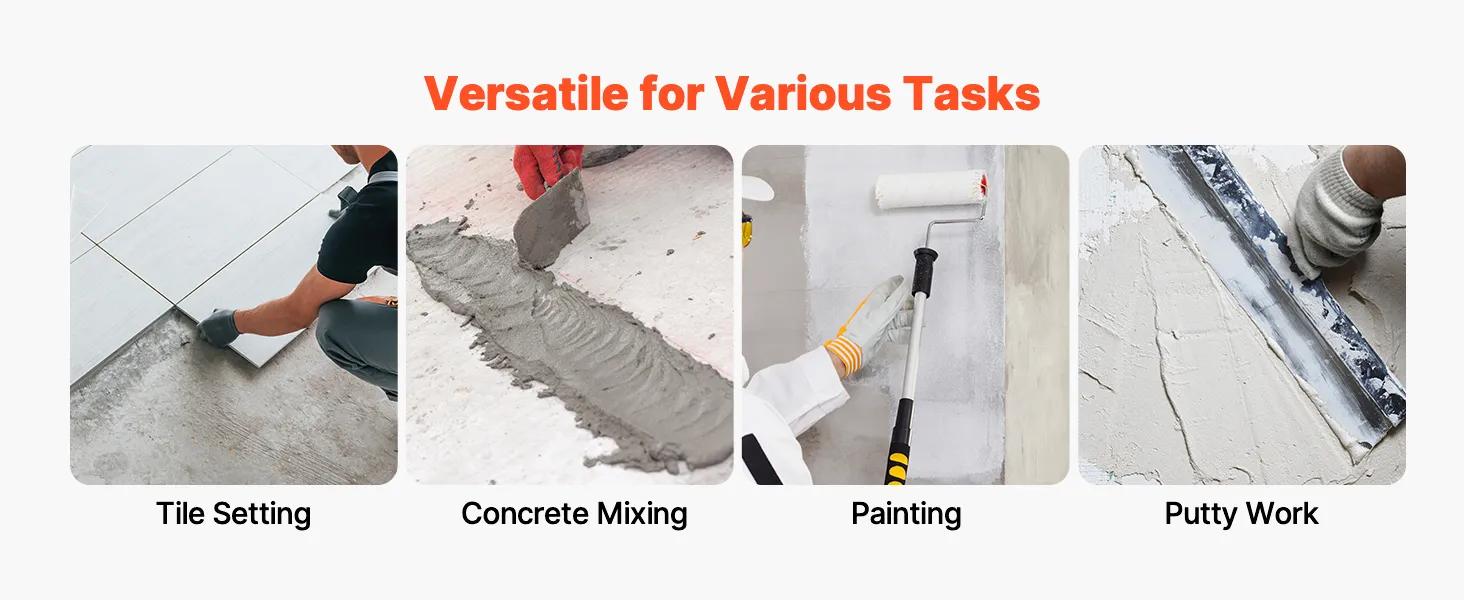 Suitable for construction, home renovation, and remodeling. Handles tough materials like mortar, thinset, and epoxy with ease.