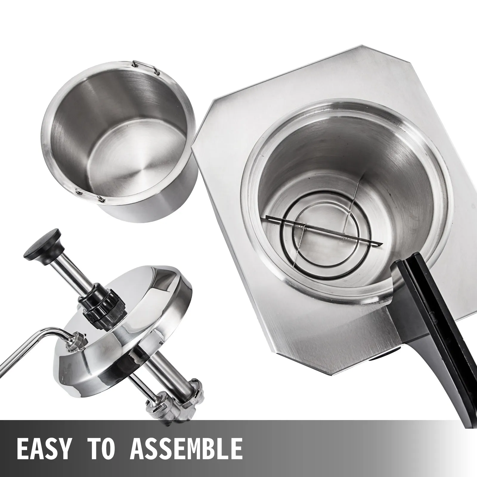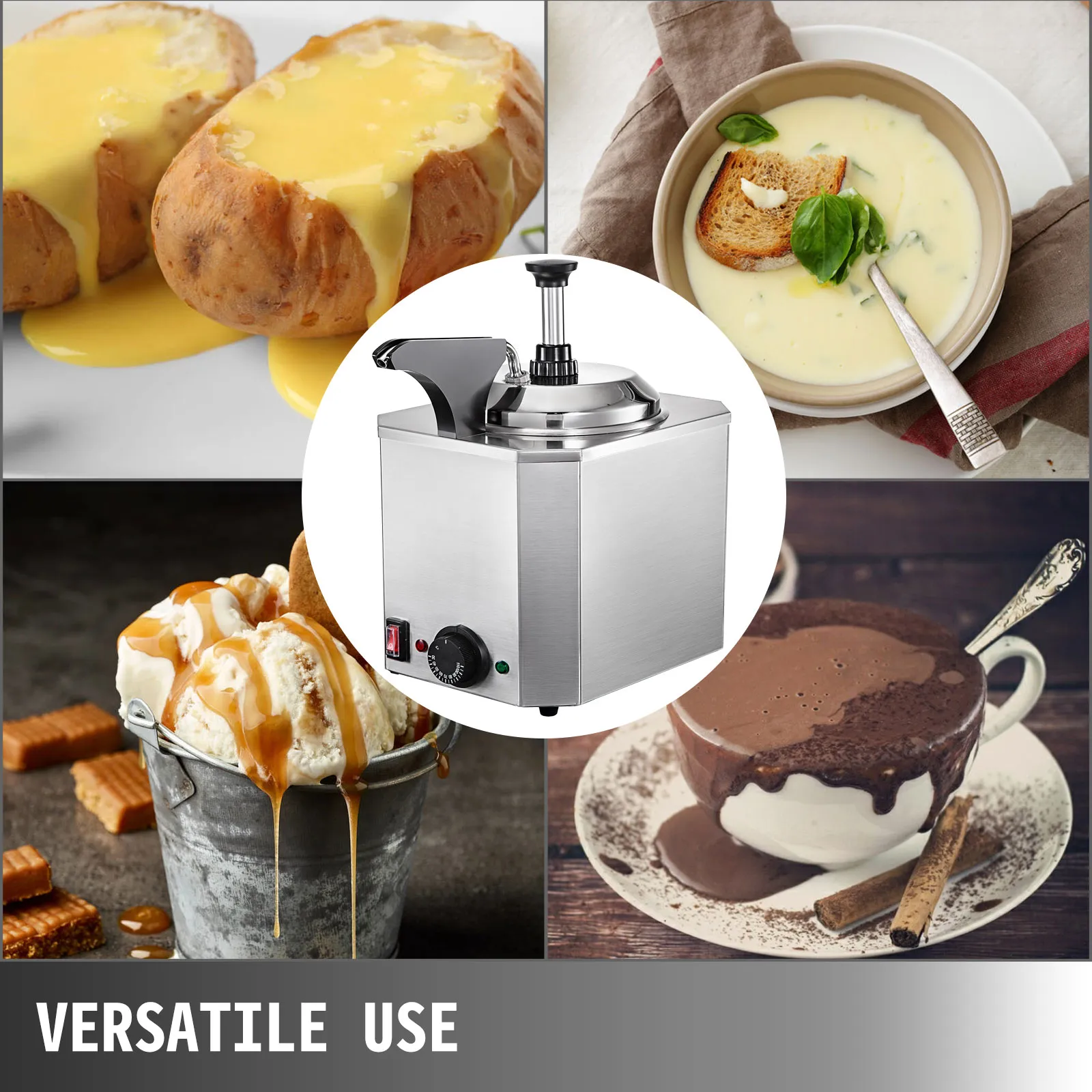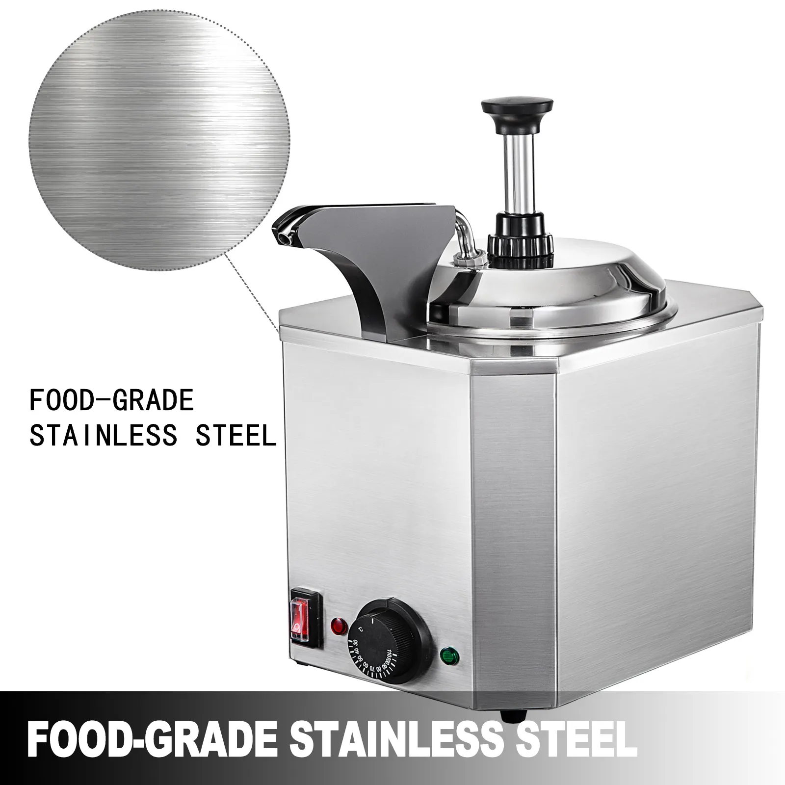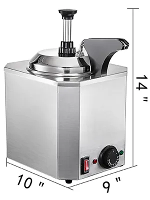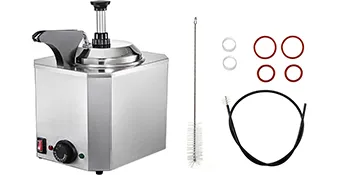 This cheese pump dispenser is equipped with a warming tank, which can accept 2.5L (0.66 gal) nacho cheese, or hot fudge.