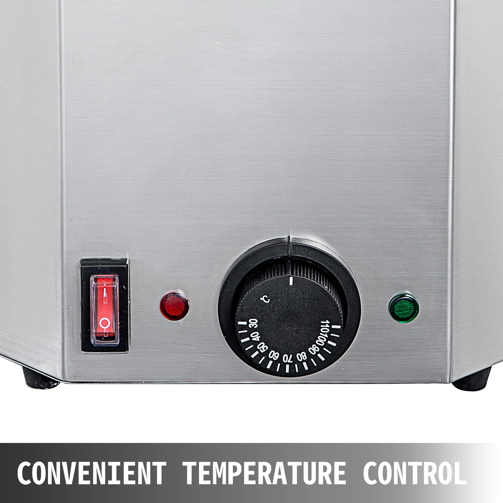 Nacho cheese dispenser warmer, equipped with a pump, is made of all food-grade stainless steel. Anti-rust, anti-corrosion, and easy cleaning. The nacho cheese and sauces can be warmed up from 30℃ to 110℃. It adopts a large capacity warming tank of 2.5L, perfect for melting nacho cheese, hot fudge, caramel, chili, curry, sauces.
