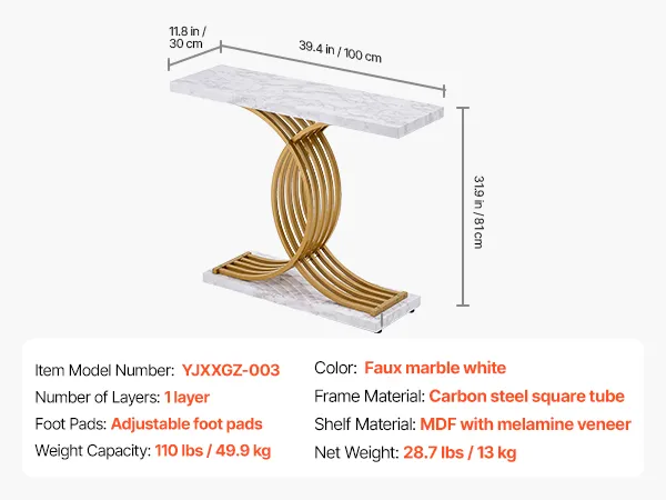 Sturdy and Durable Design: Our narrow console sofa table is crafted from thick MDF wood and a sturdy metal frame, supporting up to 110 lbs (49.9 kg). It includes 4 adjustable feet to ensure stability on uneven floors and helps avoid damage to your flooring. The anti-tip device ensures additional stability and security.