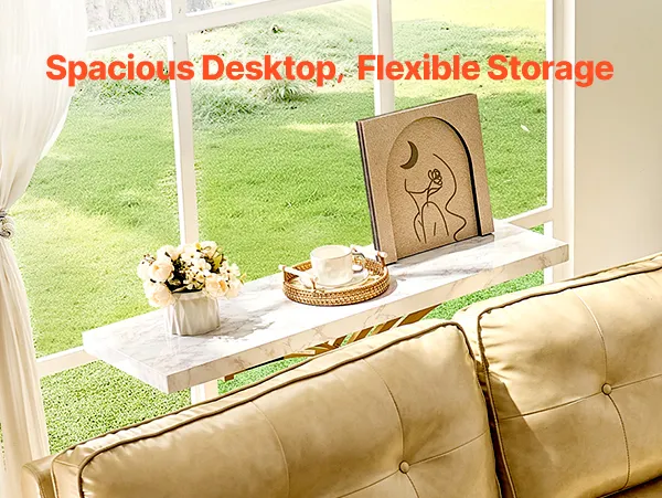 Our behind-couch table features a spacious tabletop, perfect for displaying your favorite decorations, art pieces, or family photos and storing items like your phone and laptop.