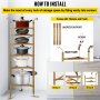 Store All Your Pots & Pans On A Single Rack: Designed with 61.2x19.7 inch large storage units, this item is perfect for creating a comprehensive system that allows you to keep kitchen cookwares neatly contained. It features 6 spacious shelves, 4-8 inches blank between each layer, ideal for holding pans, bowls, discs, basins, vegetable baskets, kettles, and plants.
