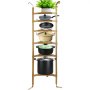 Keep your kitchen facility organized with this coppery 61.2x19.7 inch kitchen corner rack. This versatile stand has 6 shelves to hold pots, pans, plants kettles, fruit and vegetable baskets. In addition, the distance between each layer is different.
