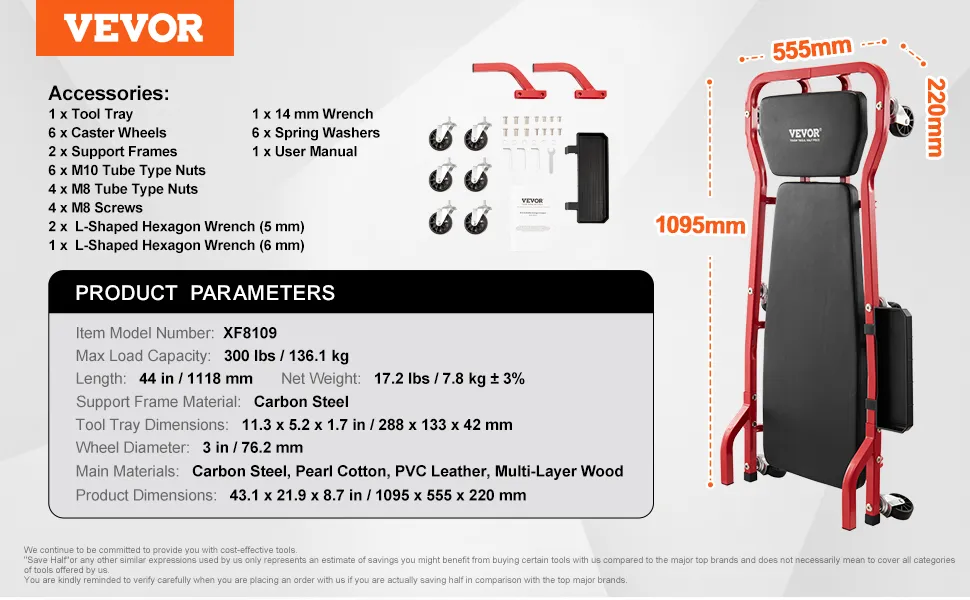 Constructed with high-strength carbon structural steel, this mechanic creeper is built to support your full body weight without bending or collapsing, ensuring durability whether you’re lying down or sitting.