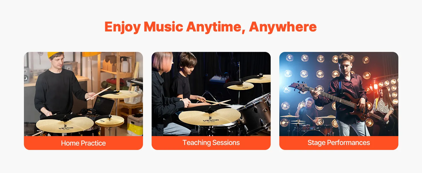 Whether you’re practicing at home, in a music school, or on stage, these drum cymbals deliver clear, vibrant tones and are ideal for any musical style. They’re the great fit for any setting or performance.