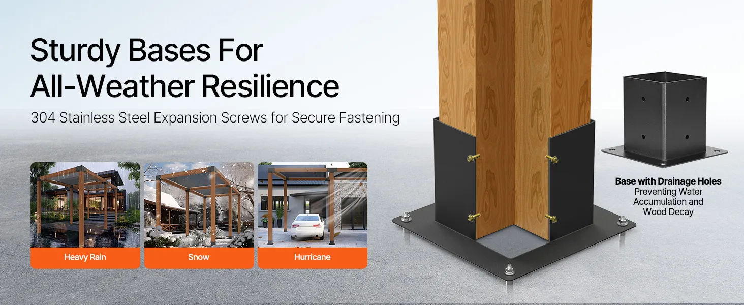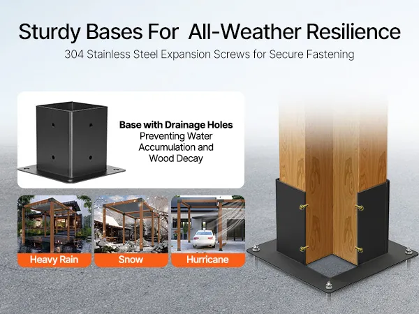 Strong Fixation: The pergola bracket kit features upgraded stainless steel expansion screws with high hardness and corrosion resistance for lasting strength. Extended to 60 mm, the anchors provide secure installation on concrete, wood, and other surfaces