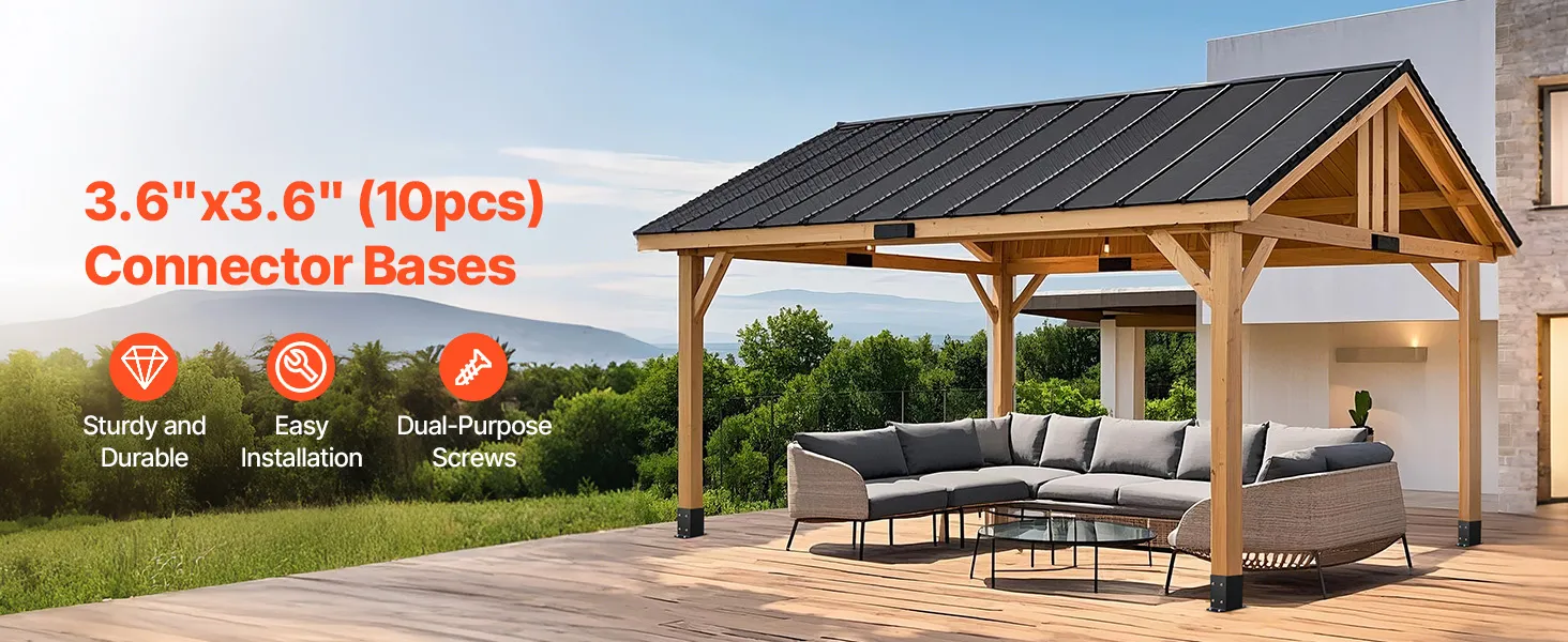 Stable Support: The inner size of each post base is 3.6 x 3.6 inch, with a total of 10 pieces. It is recommended for use with 3.5 x 3.5 inch posts. The fully enclosed design provides secure, effective support and ensures no wobbling during use