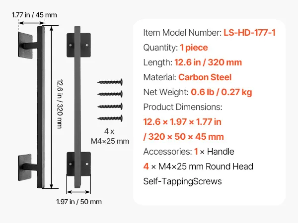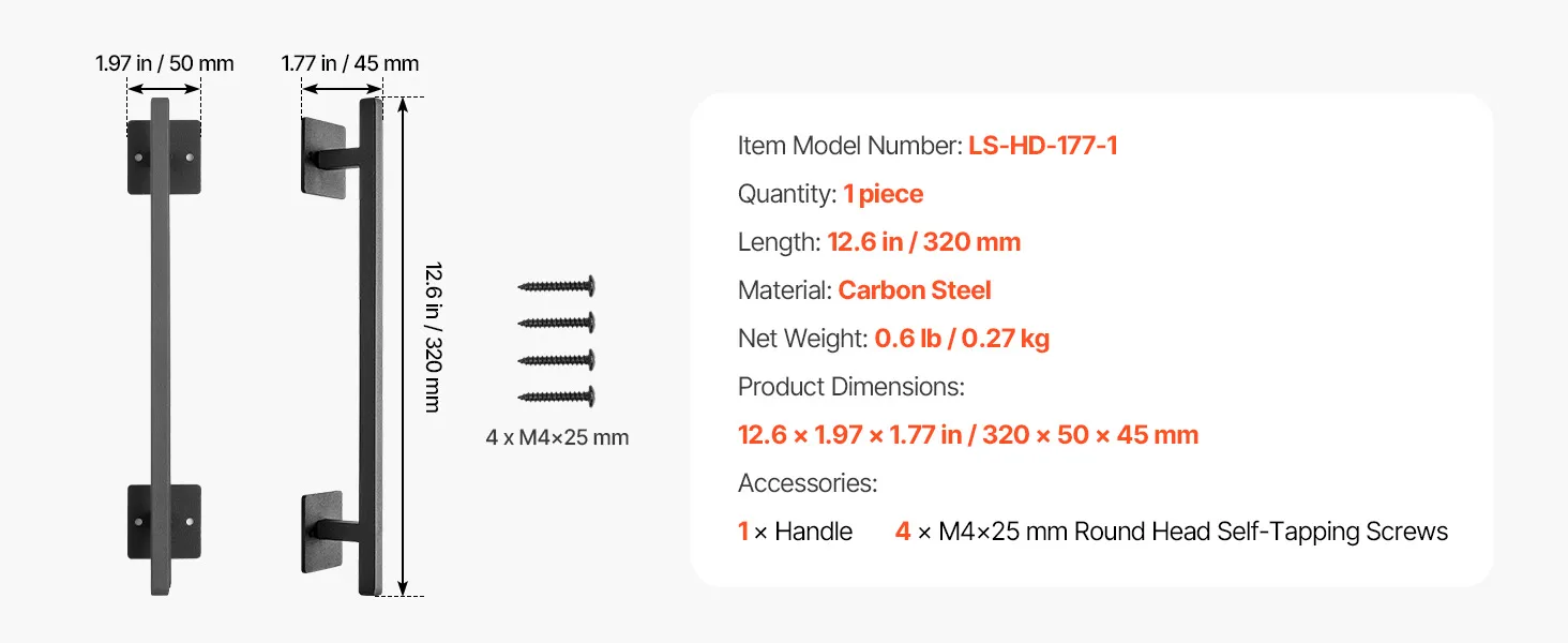 VEVOR Barn Door Handle, 12.6 in Rustic Fence Gate Handle, Rust-Resistant Coating, Heavy Duty Carbon Steel Outdoor Gate Handles, Easy to Install, Metal Sliding Door Pulls for Garage Shed Closet Pantry