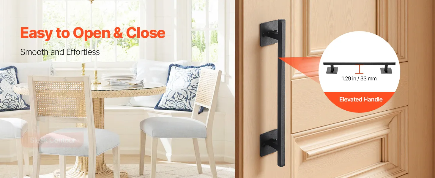 Rust & Corrosion Resistant: The barn door handle features a rust-proof coating to prevent oxidation and corrosion, ensuring reliable, durable operation in any condition.