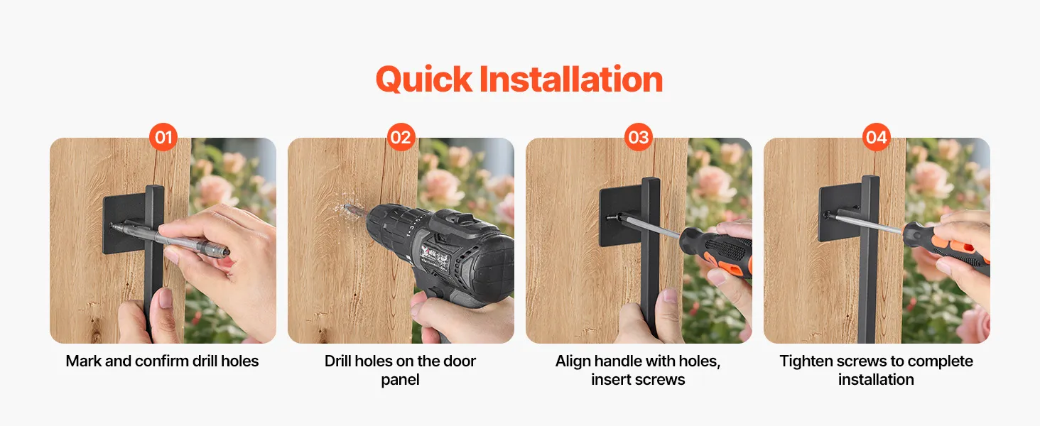 Stylish & Functional: Featuring a unique handle design and sleek black finish, the door pull handle adds a modern industrial flair to garden gates, barn doors, or tool sheds.
