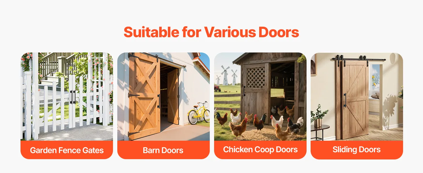 The barn door handle is ideal for fence gates, barn doors, tool sheds, garden gates, and courtyard doors, adapting effortlessly to various door types.