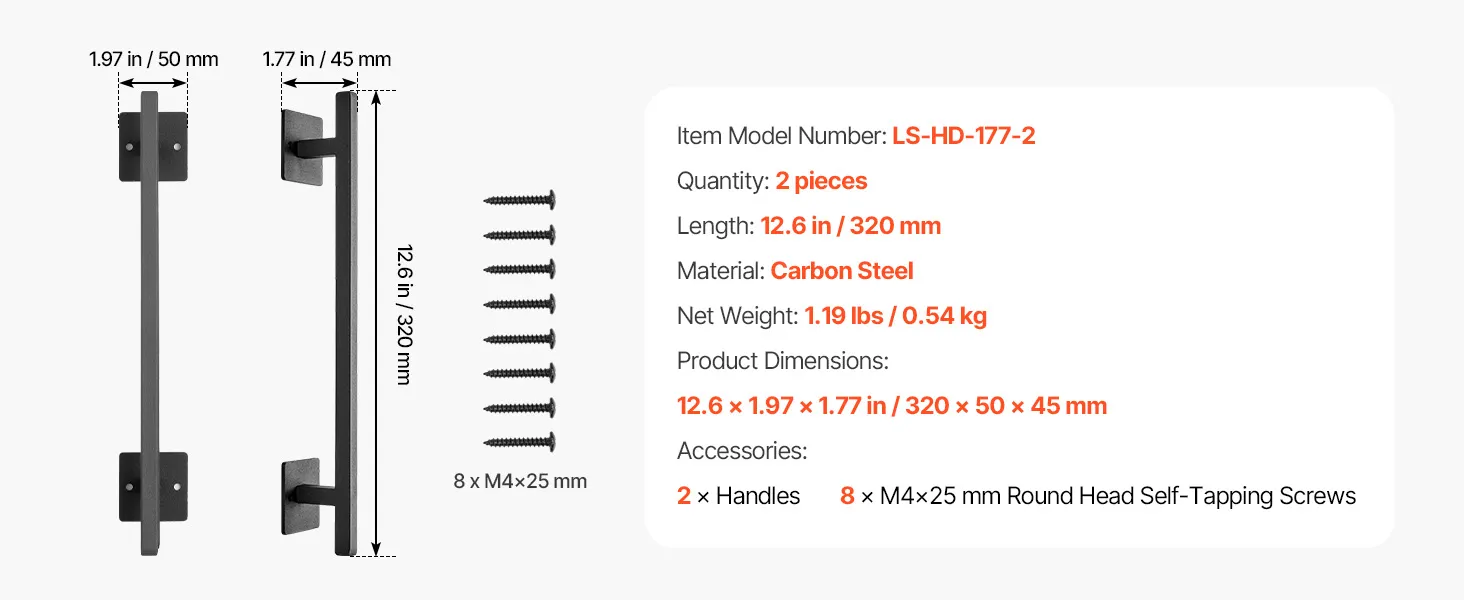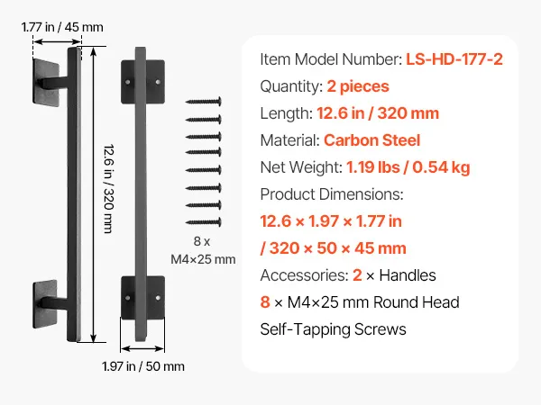 VEVOR Barn Door Handle, 2Pcs 12.6 in Rustic Fence Gate Handle, Rust-Resistant Coating, Heavy Duty Carbon Steel Outdoor Gate Handles, Easy to Install, Metal Sliding Door Pulls for Garage Shed Pantry