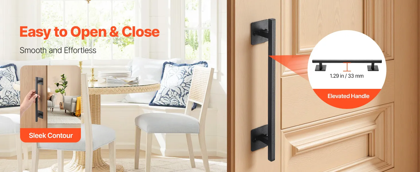 Rust & Corrosion Resistant: The barn door handle features a rust-proof coating to prevent oxidation and corrosion, ensuring reliable, durable operation in any condition.