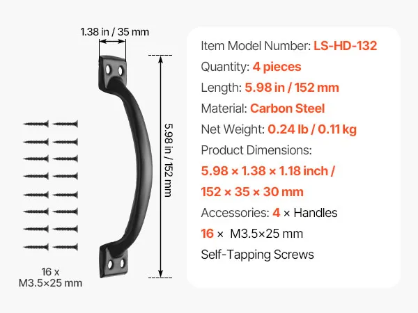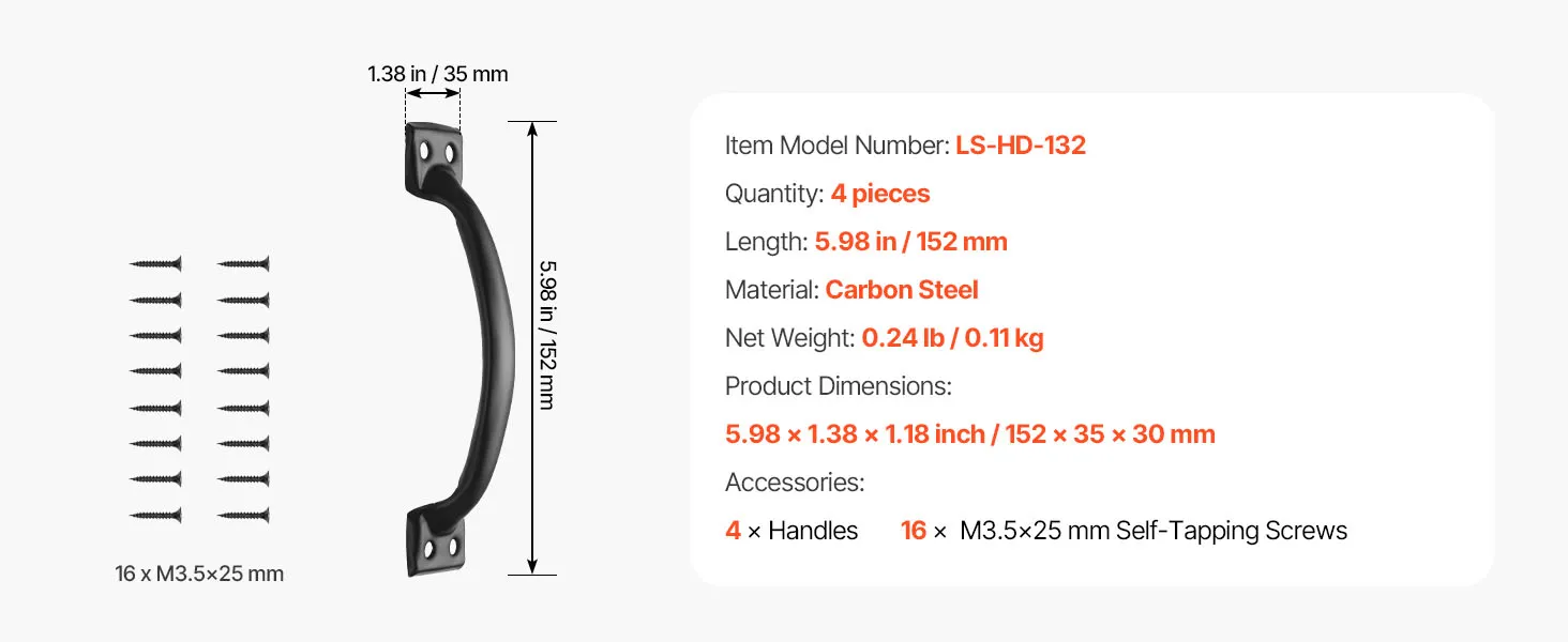 VEVOR Barn Door Handle, 4Pcs 6.5 in Rustic Fence Gate Handle, Rust-Resistant Coating, Heavy Duty Carbon Steel Outdoor Gate Handles, Easy to Install, Metal Sliding Door Pulls for Garage Shed Pantry