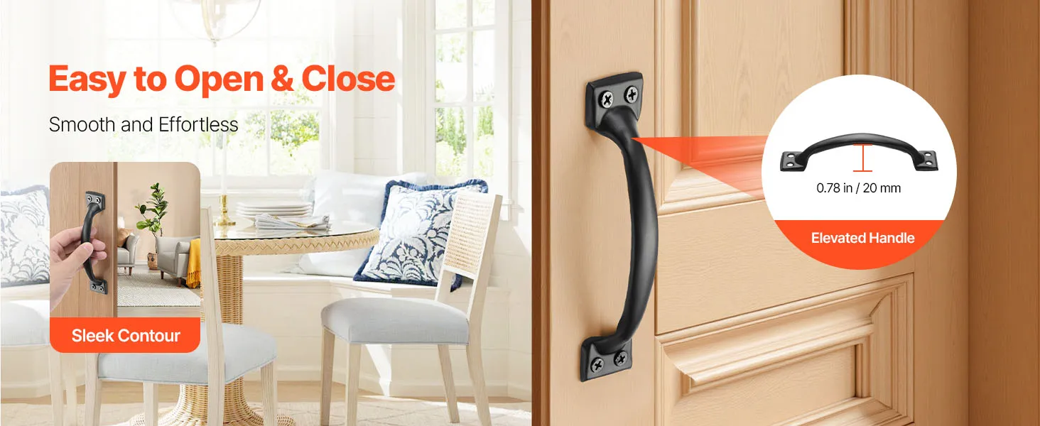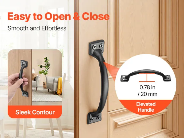 Stylish & Functional: Featuring a unique handle design and sleek black finish, the door pull handle adds a modern industrial flair to garden gates, barn doors, or tool sheds.